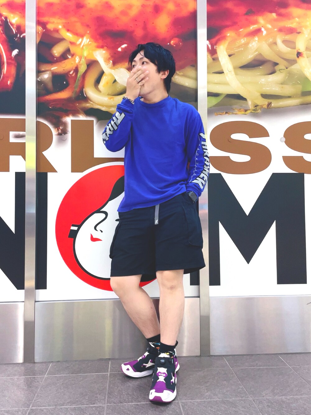 広島駅(広島県 広島市) GWは雨がガンガン降ってたけど半ズボンが火を吹きました🔥 このTは学生時代からきてます 色がドンピシャすぎて... この紫がなんとも好き☝️