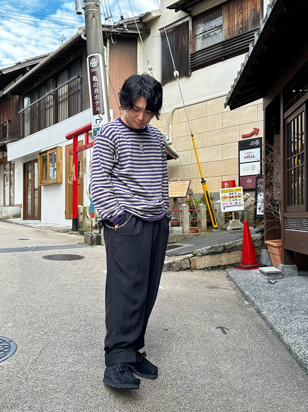 有馬温泉(兵庫県有馬町) 有馬温泉にゆっくりしに🚶🏻♂️ 秋っぽい格好したけど昼間はまだ暑いですね🥹 新しく買ったボーダーT下ろしたけど汗だくなりました🤣 ウォレットチェーン、叩かれがちやけど今年もたくさん使っていきたいな👏
