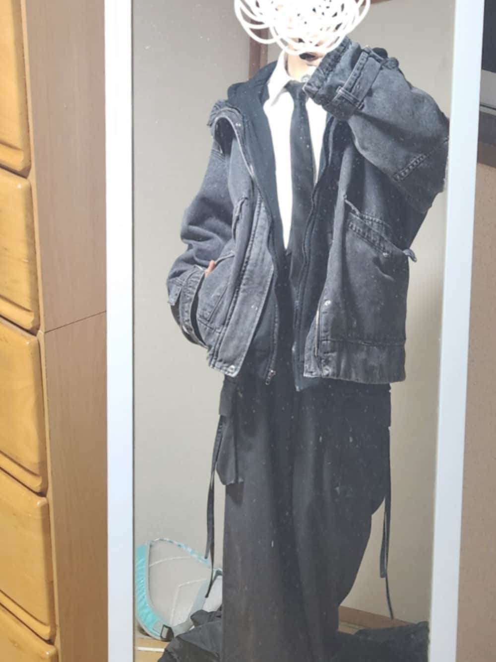 マンパとフルジップのレイヤードでっすす パンツがかなりワイドで羽織ってるものが2枚なのでシャツはタックインで少しぽてっとした印象を払拭してますこのコーデまじ万能