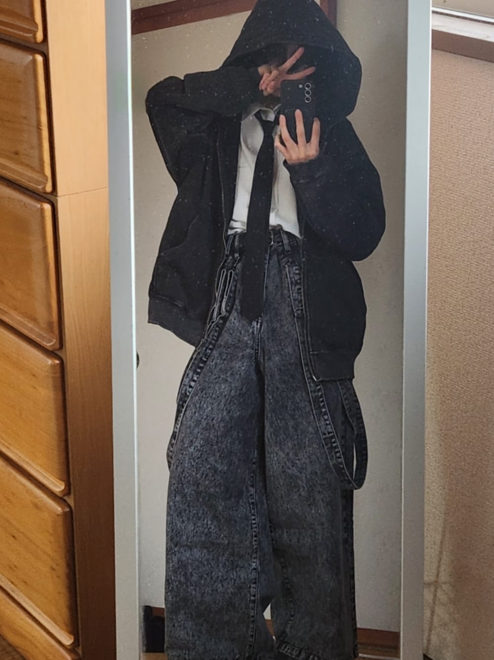 デニムはケミカル加工入ってるしパーカーも硫化染めとかスノーパウダーとか入っててヴィンテージトレンドにストライク スクールコーデって適当にシャツネクタイ合わせときゃなんとかなるよね