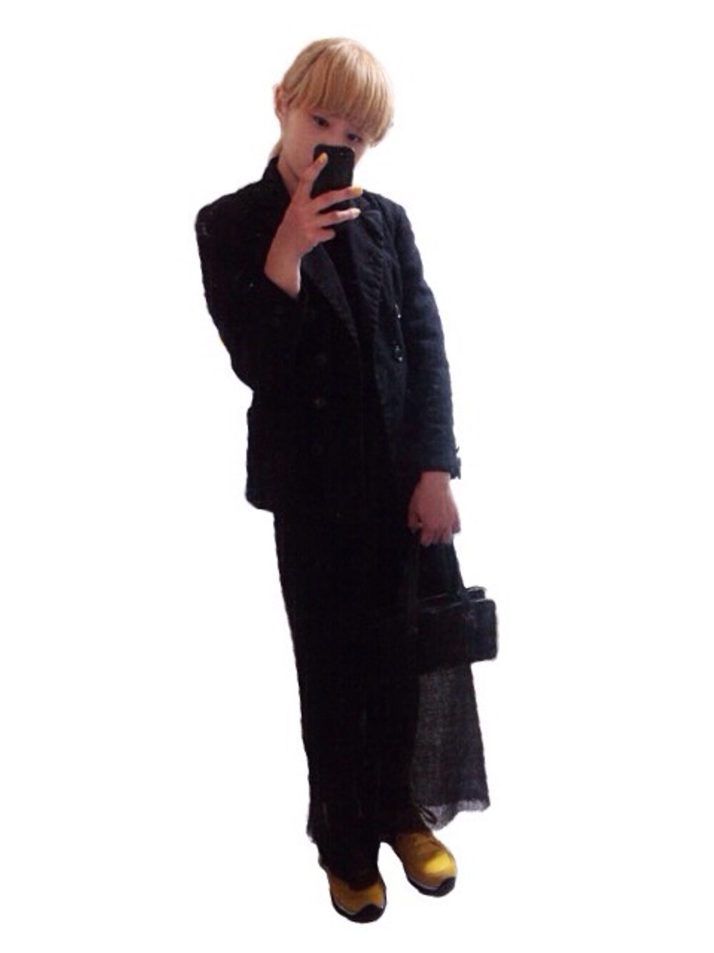 大学の入学式でした。 上下ヨウジ、頭と爪とスニーカーは黄色でそろえました。