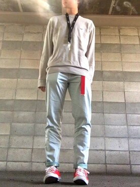 「SPINNS(スピンズ)のカラーガチャベルト(ベルト、レッド系)」を使った、さとしさん(メンズ・171cm)の春コーディネート