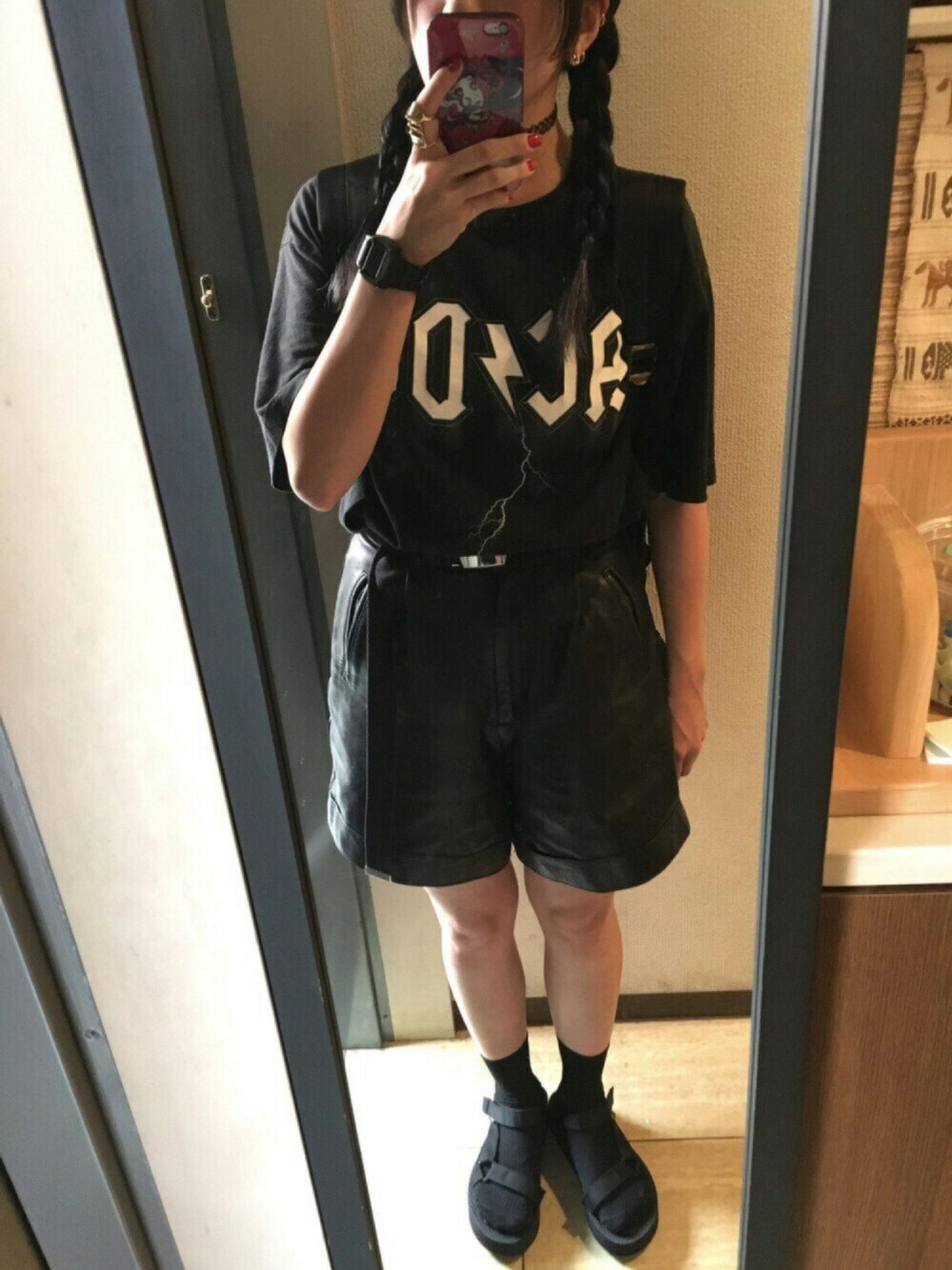 9/2 いとこの住む横浜に来ました🐼 下北沢、渋谷、原宿を ひたすら散策しました🐼 慣れない土地はそわそわしますね🐼笑 コーデは見づらいですが、 お気に入りのバンドTシャツと フェイクレザーパンツです🐼