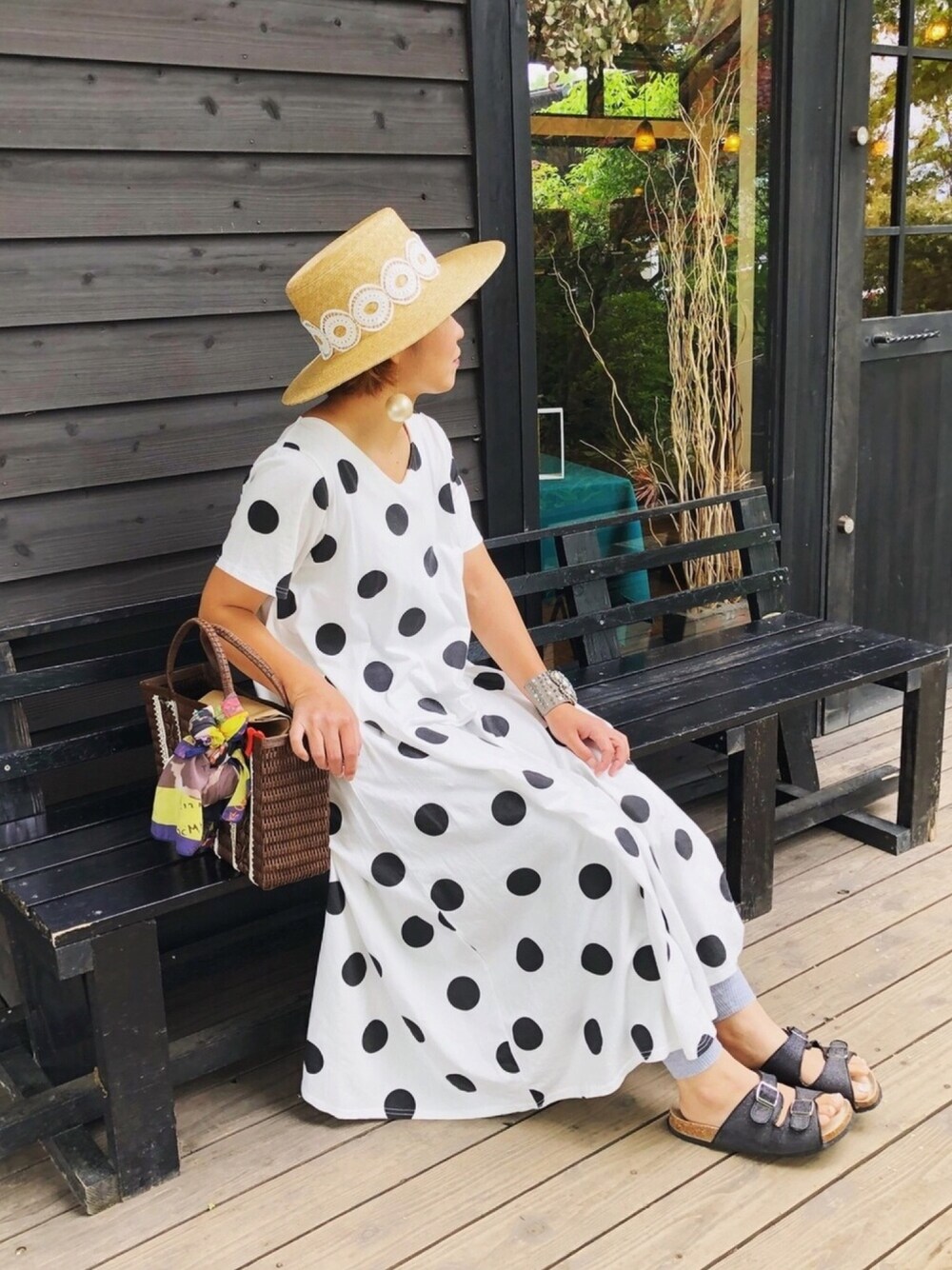息子の病院受診日🎵 ラフ🎵 ドット好きにはたまらないワンピース❤️ カメラマンは息子✨