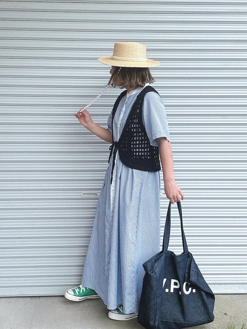 ♡、。・S♡、。・:*:・のハット「パール付きストローハット」を使ったコーディネート