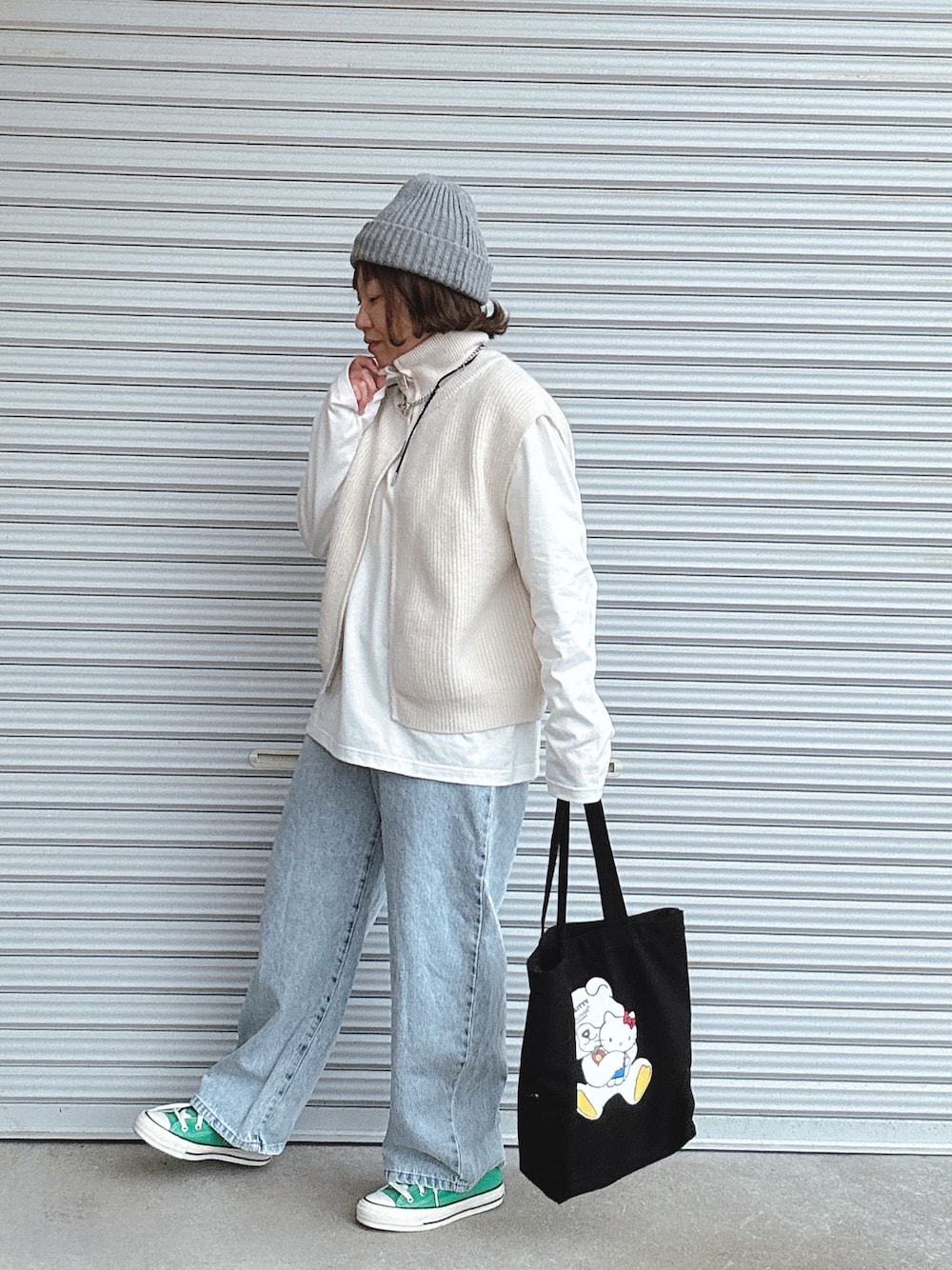 ♡、。・S♡、。・:*:・のベスト「ジップアップニットベスト」を使ったコーディネート