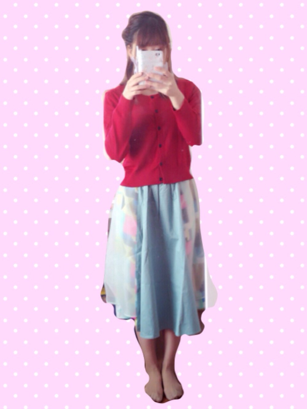 2016.02.11 はるいろコンビスカート 買ったのをさっそく♡ カラフルでかわいい♡ トップス白にしたら春らしいけど 実際まだ真冬なので 濃い色合わせて春感抑え目で。 レッドとくすんだ水色の組み合わせが すきなのです♡