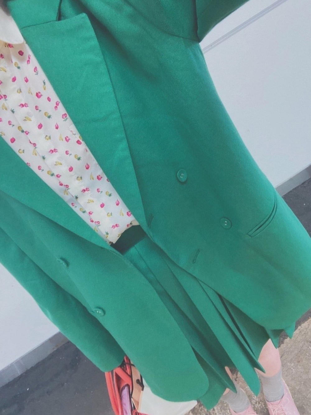 pch記録用のテーラードジャケット「【セットアップ対応】パワショルダブルブレストジャケット」を使ったコーディネート