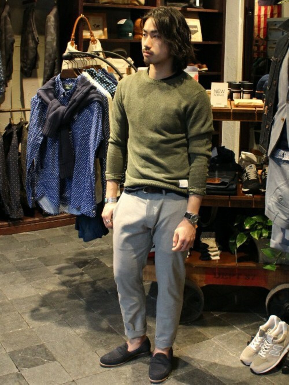 高瀬のニット/セーター「リネンミリタリーニット #」を使ったコーディネート