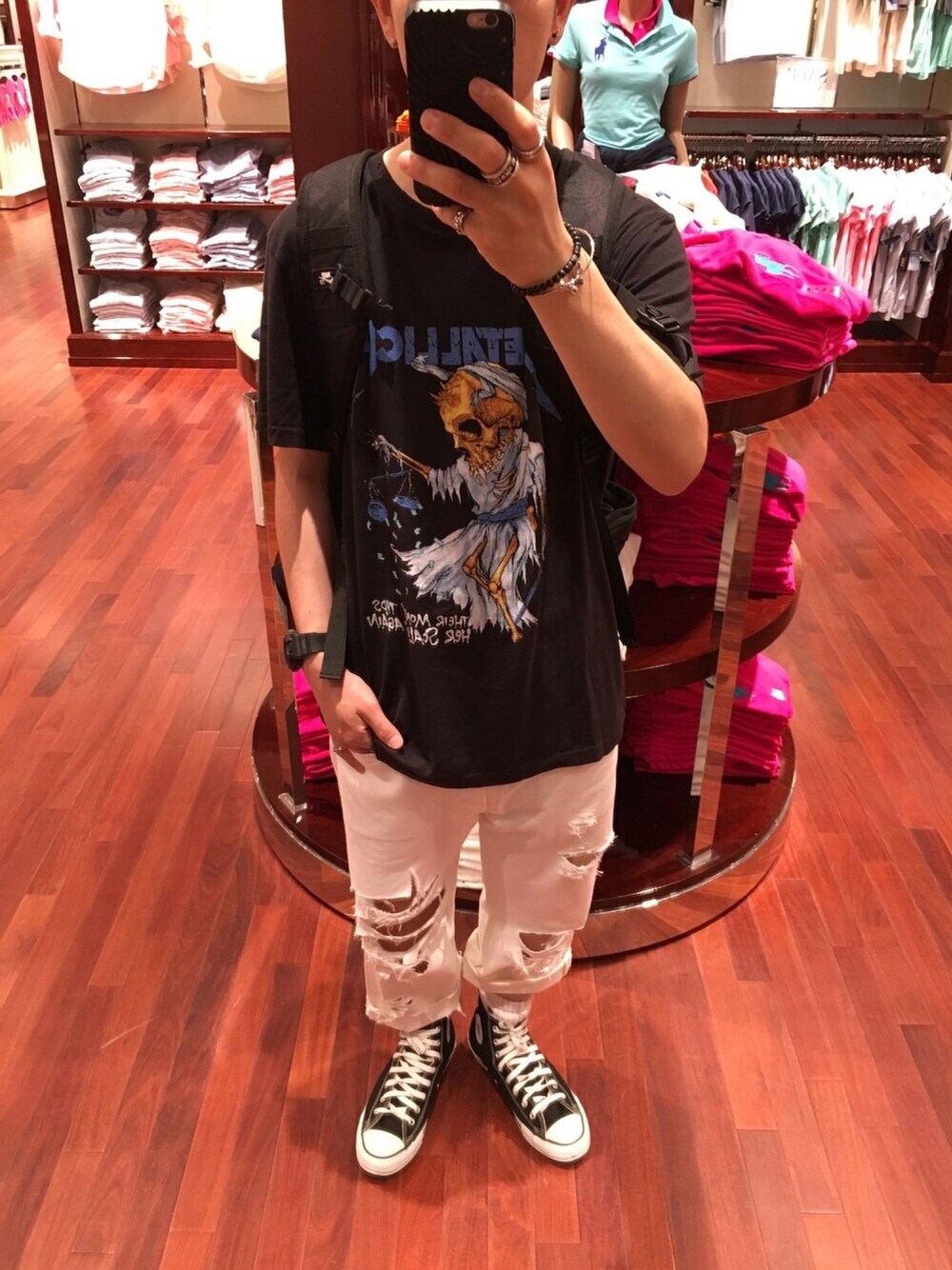パンクな服装をしたくなることが半年に一度あります。それが今日でした。 ということで夜な夜な一度も着ていなかったリーバイスのホワイトデニムを切りつけクラッシュデニムを作りました🗡 けっこううまくできた! 今街中でメタリカのTシャツ売ってますね。 流行りに乗っかってしまいました🌞