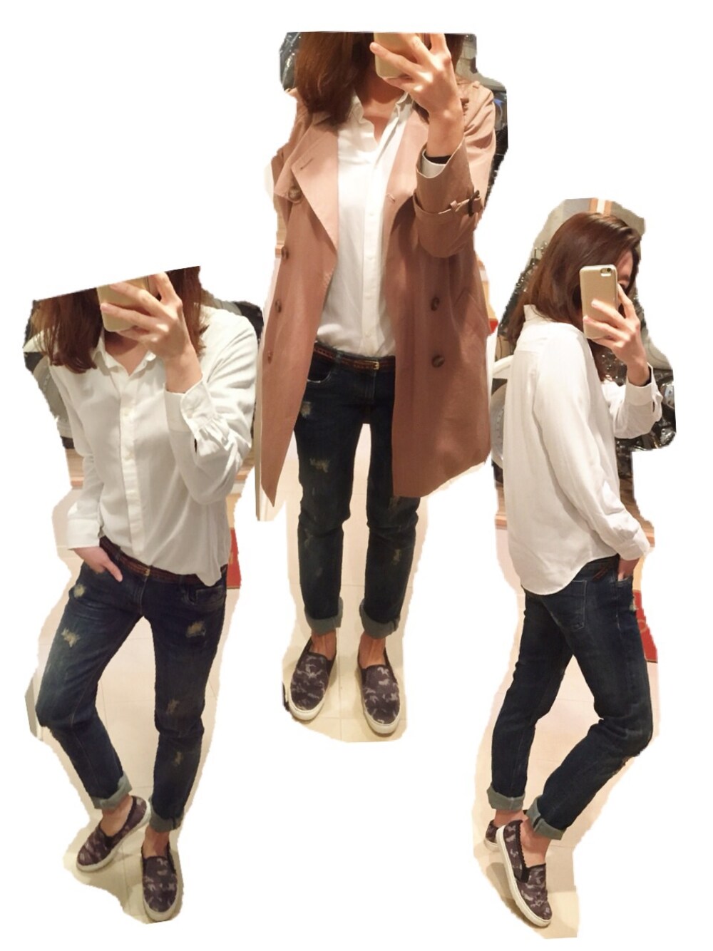 今日は超シンプルで! UNIQLOのテロテロシャツは前だけインして、後ろは出して、ストレートのダメージデニムとラメ入り迷彩柄スリッポン。 とてもラフな格好だけど、テロテロがいい感じにハズしてると勝手に思ってる、お気に入りコーデw アクセはビジューで女性らしさプラス☆