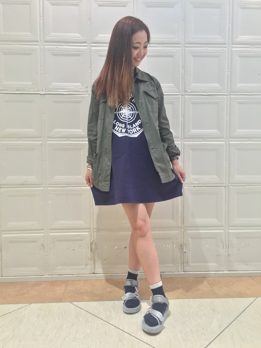 今日はNEW YORKプリントで☺︎ ワンピースもソックスも実は後ろにNEW YORK♪