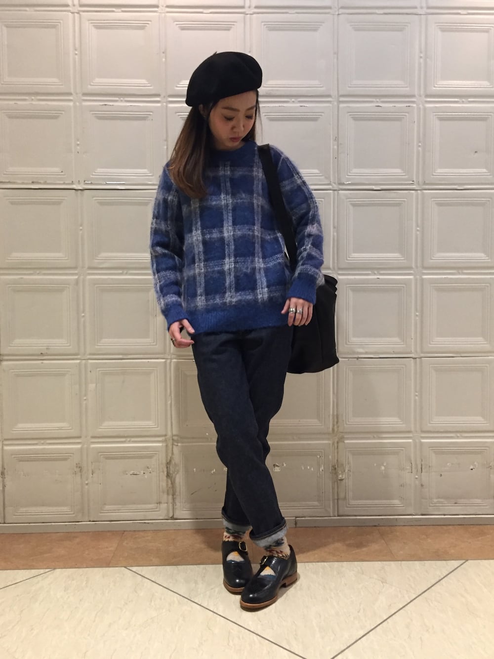 BLACK×BLUEなスタイリング。 シャギータータンはサイズ感もばっちり。 デニムももちろん。ワイドパンツと合わせて トレンド満載でいくのも◎。 FUDGE風に。
