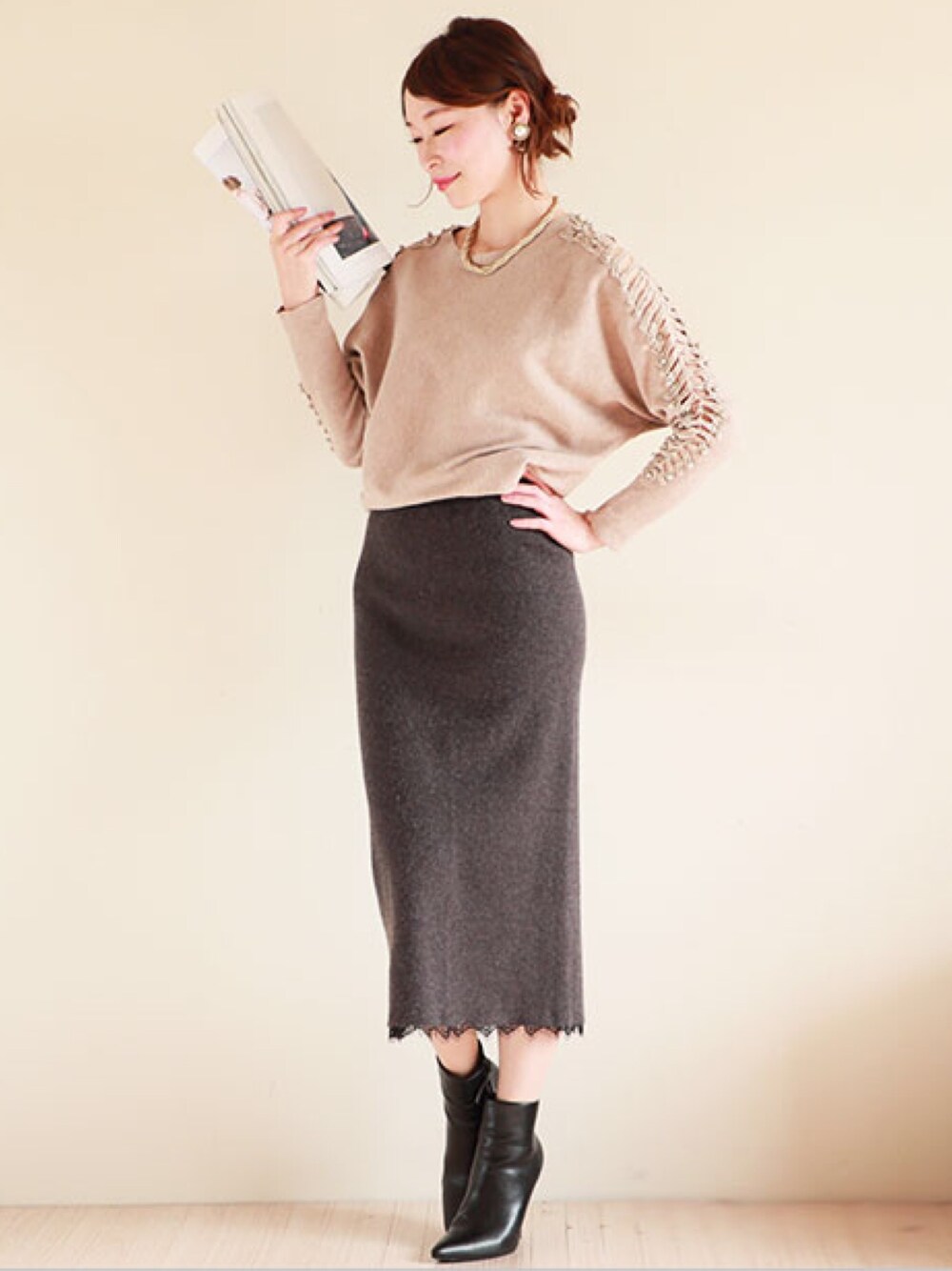 ご覧いただきありがとうございます😊 タイトスカートってオンオフ問わず使える定番アイテムですよね🙆♀️💓 定番アイテムでも素材を意識すればコーデに季節感をプラスできます😊