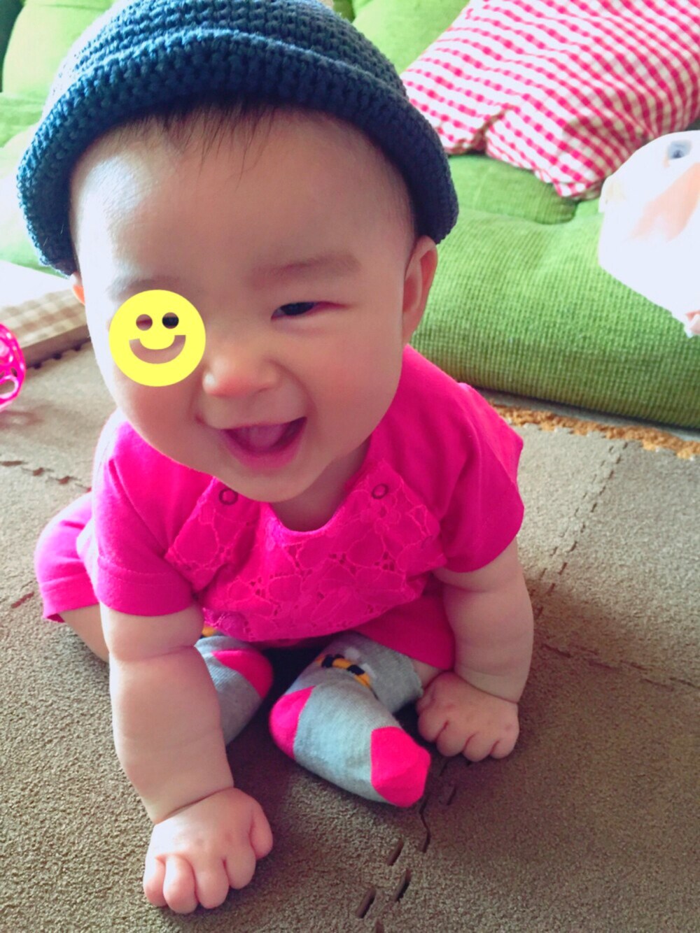にまあ😁 ご機嫌と見せかけて実は不機嫌💦 今日はzukuパパの誕生日だからパパが選んでくれたロンパース‼️ でもパパはお仕事。。ファイトー 半袖ロンパースは他に持ってないからコレは70サイズで今年の夏限りと割り切った‼︎‼︎ たくさん着よう♥️