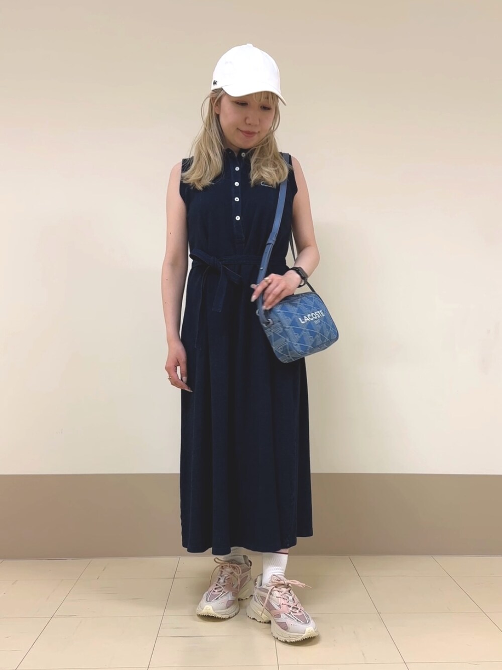 SAWAI(LACOSTE タカシマヤ ゲートタワーモール店)のワンピース「インディゴノースリーブポロドレス / マキシ丈ワンピース」を使ったコーディネート