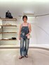 夏はデニム素材を避けがちになりませんか。 このデニムオールインワンは、生地がすごく柔らかく薄手なので真夏でも着ていただけます。 低身長なので、肩ひもマックスに短くしても少し落ちてきてしまうので、紐だけを結んで長さを調節してます! 胸元や背中が開いてるので、ロゴやバックデザインのあるトップスと合わせて着ても可愛いです。 トップスは、ノースリーブは苦手という方でも着れる人気アイテムです。 肩部分がタックになっているので立体感が出てくれて肩幅や二の腕を綺麗にカバーしてくれます。肩幅ガンダムにもならない程よいアームなので肩幅広めな方にも挑戦していただきたいです!