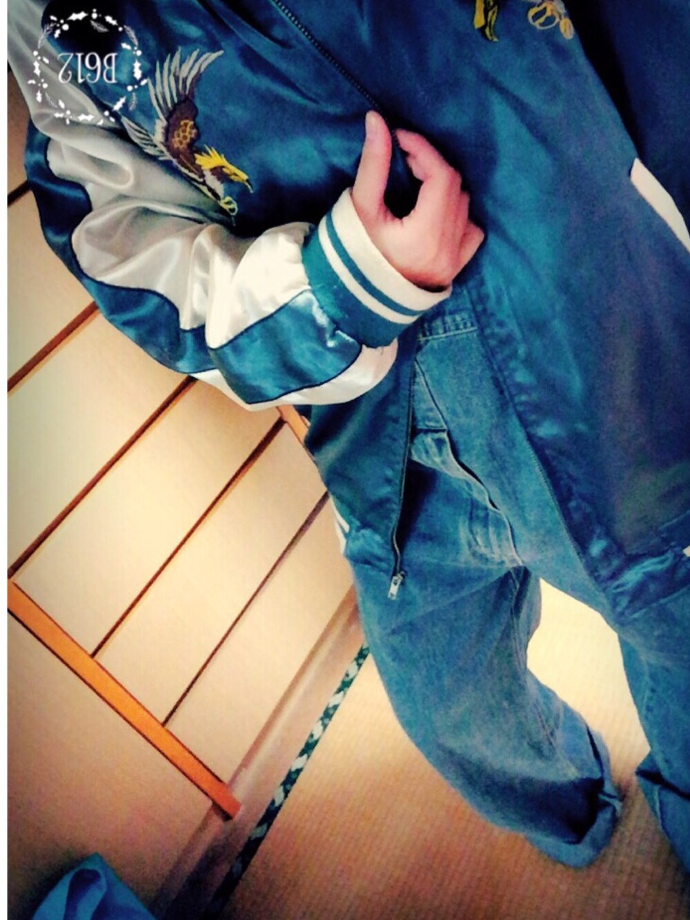 パパが!青のスカジャンくれた◎ パパが!でかでかオーバーオールくれた◎ 今日はブルーできめた◎ 実は中のトレーナーも青○ 髪の毛くるまき◎ ツインテでもよし◎