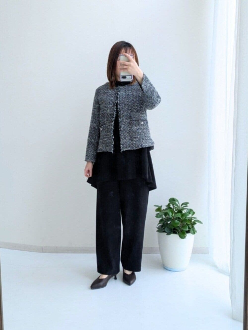 coo(nissen本店)のスーツセット「【入学式・卒業式・フォーマル】ツイード調ノーカラージャケット+ロング丈裾フレアブラウス+ワイドパンツセットアップスーツ〔Callarus〕」を使ったコーディネート