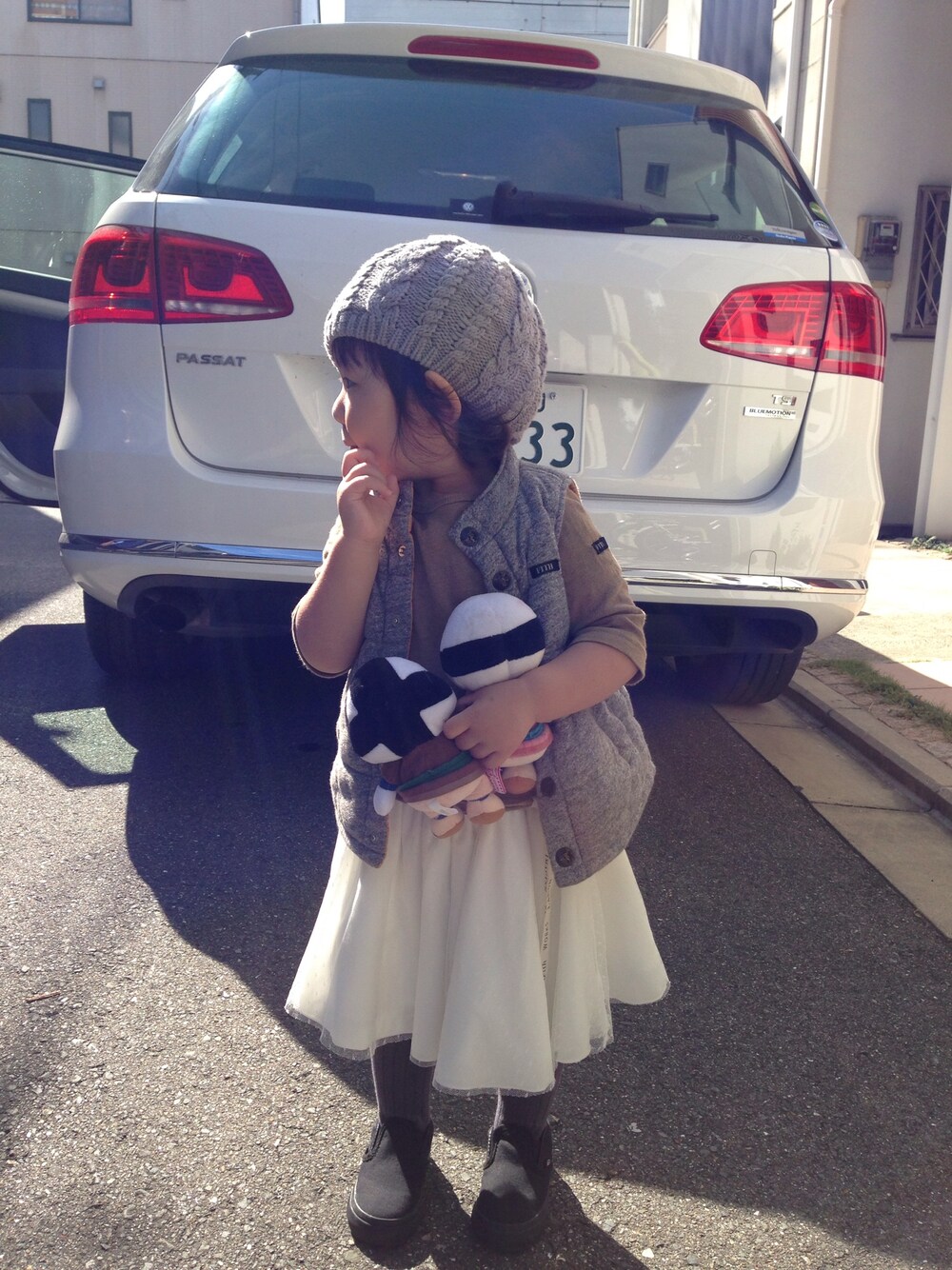 おでかけ前のバタバタ中にパチリ。 最近自分から帽子をかぶってくれるようになりました♡ ¨̮⑅