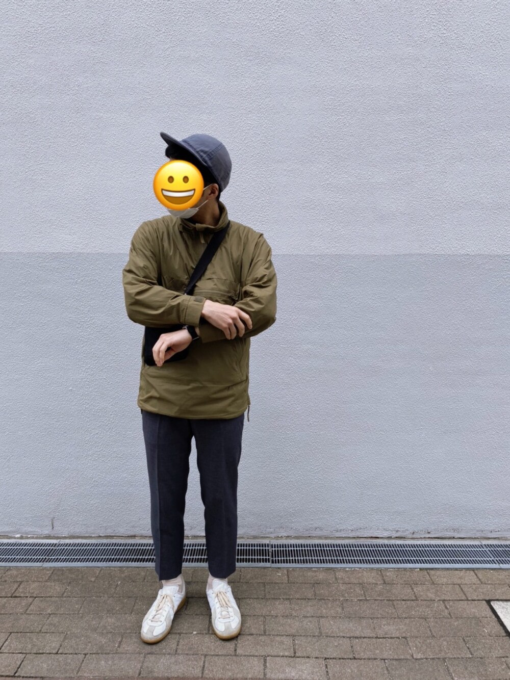 イギリス軍のミリタリージャケットにユニクロ×JWのパンツ。小物はミリタリーで纏めました。