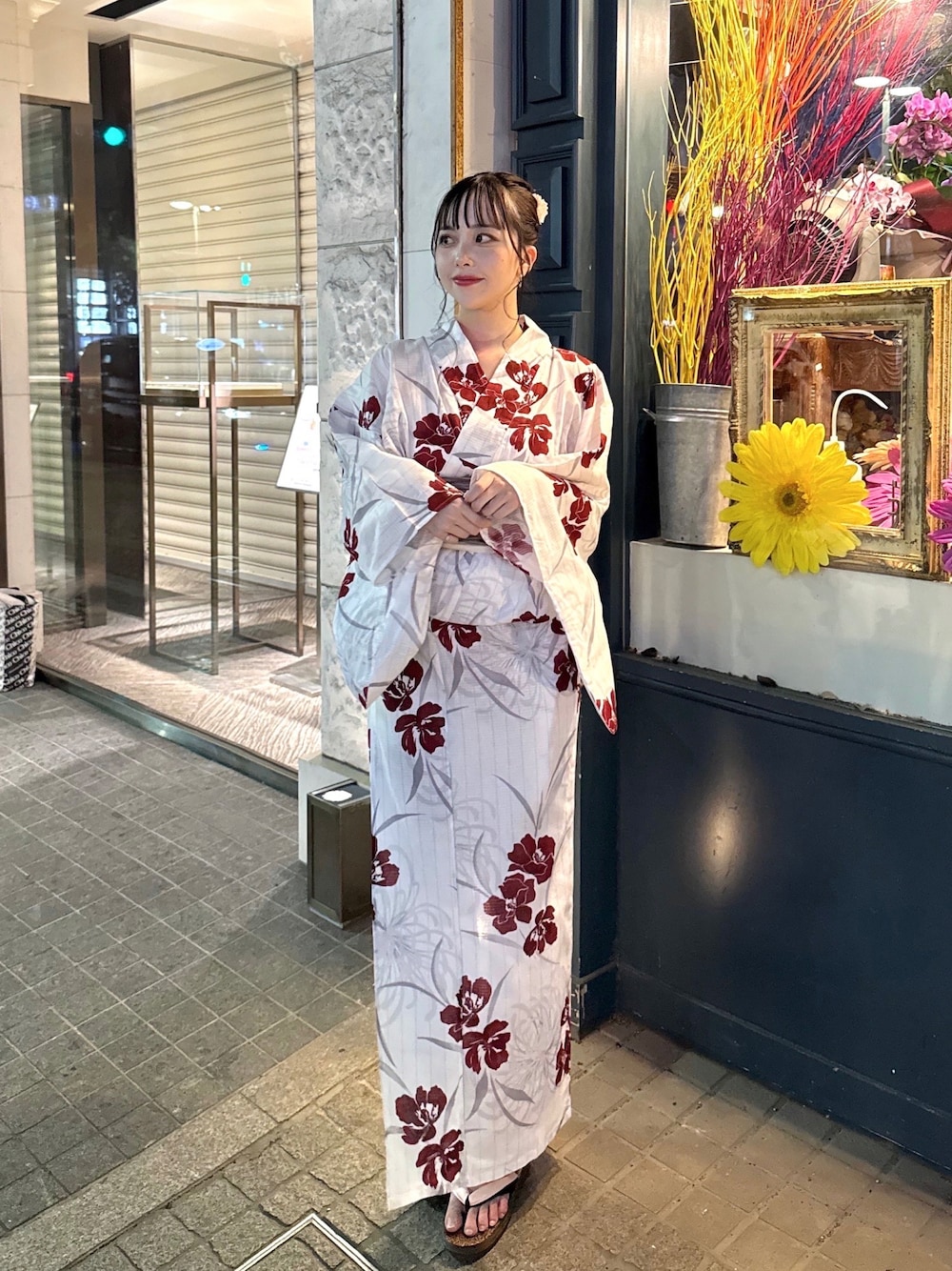 スタッフレビュー 158㎝/骨格ストレート 靴のサイズ23.5cm Sサイズ着用 【浴衣】アヤメ着用 白地に赤の花柄がぱっと目を惹く浴衣です♡! 丈感は身長に合わせることが出来るので、どの身長の方でも着やすいです◎! 綿素材なので、着ていても涼しく、お家でお手入れできるのも嬉しいポイントでした◎! 【帯】ホワイトその他1着用 トレンドの兵児帯で、一気にオシャレ度をあげてくれます♡! リバーシブルなので色々雰囲気を変えて使っていただけます◎! 柔らかく扱いやすいので、自分でも可愛くアレンジできました◎!