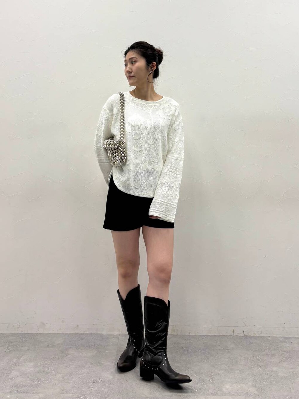 レースパターンが可愛いプルオーバー☺️ ゆるっとしたサイズ感なのでボトムはショートパンツでコンパクトに◎