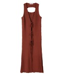 ☑️フロントリボンニットジレ フロントリボンや柄編みデザインがヴィンテージライクなニットジレ。 フロントは深めのVネックですっきりとした首元に。 バックスタイルのさり気ないオープンバックデザインが女性らしい抜け感をプラス✨ 柔らかさの中にハリのあるドライタッチな編地は、清涼感たっぷりで夏にも最適な着心地。 前を閉じてワンピース風に着こなしたり、シンプルなスタイリングにジレ感覚でプラスするなど装いをクラスアップしてくれる1着です🍉