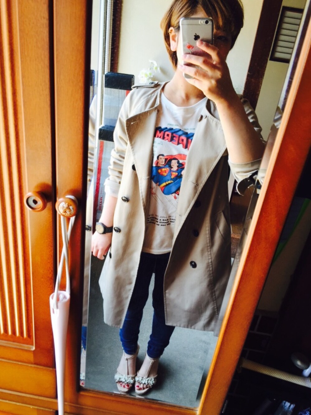今日はお休みなので、一人でケーキ屋さんに来て、そのあとスタバでお勉強したいと思います! 大人カジュアルに、デニムパンツにutにしてみましたが、トレンチコートを腕まくりして綺麗かつカジュアルに!