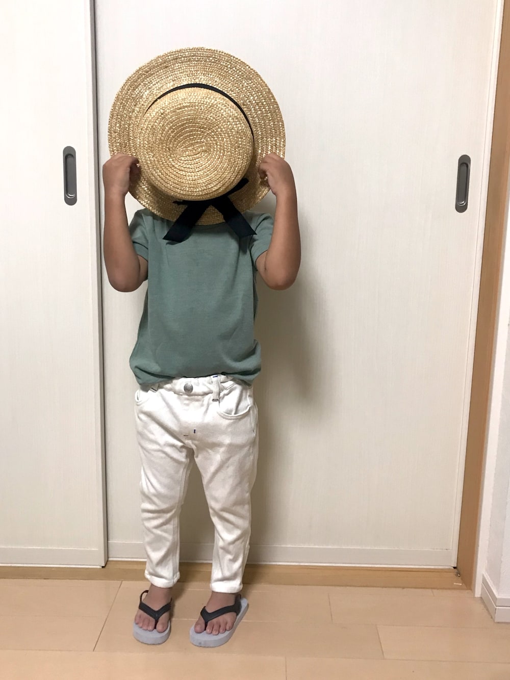 ☁︎•ꇵ͒•`s☺︎+sa*॰¨̮のTシャツ/カットソー「くすみグリーンTシャツ☁︎110cm」を使ったコーディネート