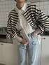 実はよく見るとメランジなオートミール生地に ボーダー配色の珍しいもの。 中は裏起毛で滑らか暖かい!! カフもロング健在、形はクロップドスウェットと ほぼ同じシルエット・サイズ感です◎ 前後2wayでトップスとしても、 スナップボタン外して羽織りでもな 万能クロップドボーダーカーデ。 ワンピに羽織ったり、タートルインも🐢 ig@sayakahara_willfully
