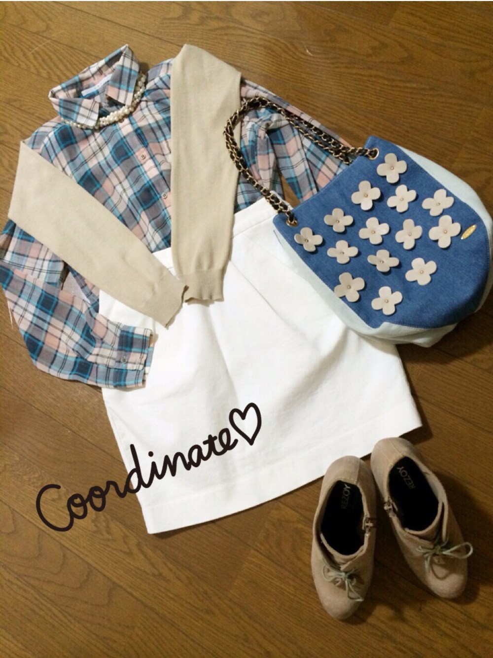 カーディガン:UNIQLO 靴:REZOY ネックレス:who's who Chico