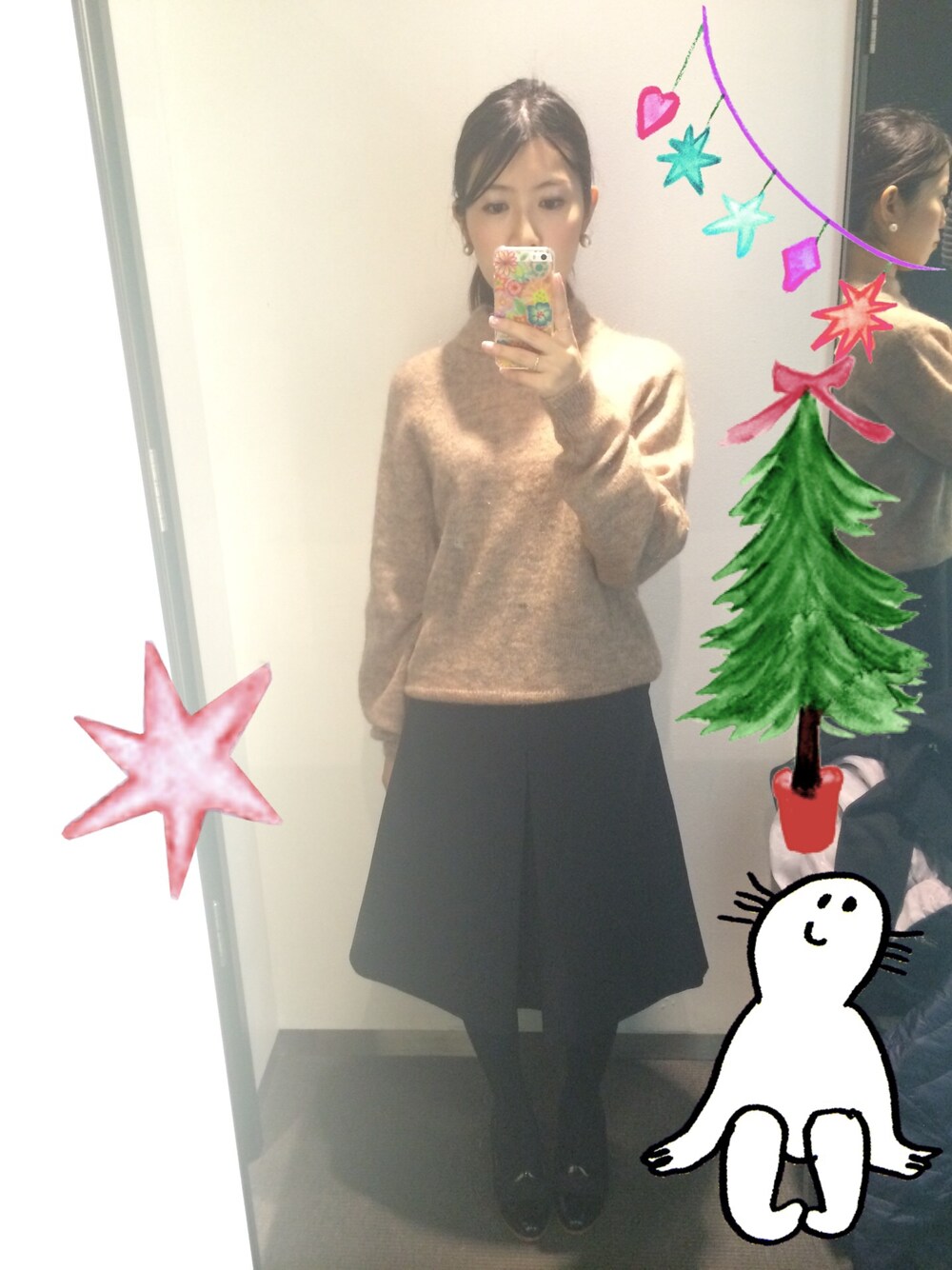 ニットはお袖が少し長め⭐️ スカートはハリがあるタイプで私には珍しく丈長め⭐️ 少し大人めのコーデにしてみました♪