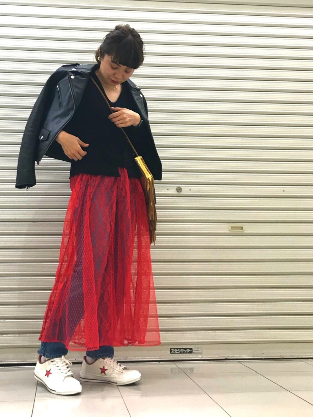 おはぎ❇︎さんのライダースジャケット「ラムレザーライダース/AEBC LAMB RIDERS◆」を使ったコーディネート