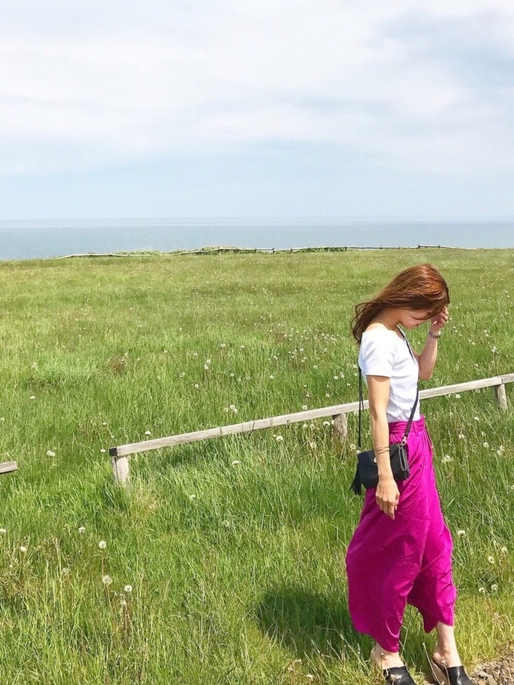 白×ピンク×黒 スカート見えなパンツはパッキリピンクで好きなやつ♡ せっかく網走にきたのでプチ観光中です🙋 後ろに見えますのはー オホーツク海でございます🌊