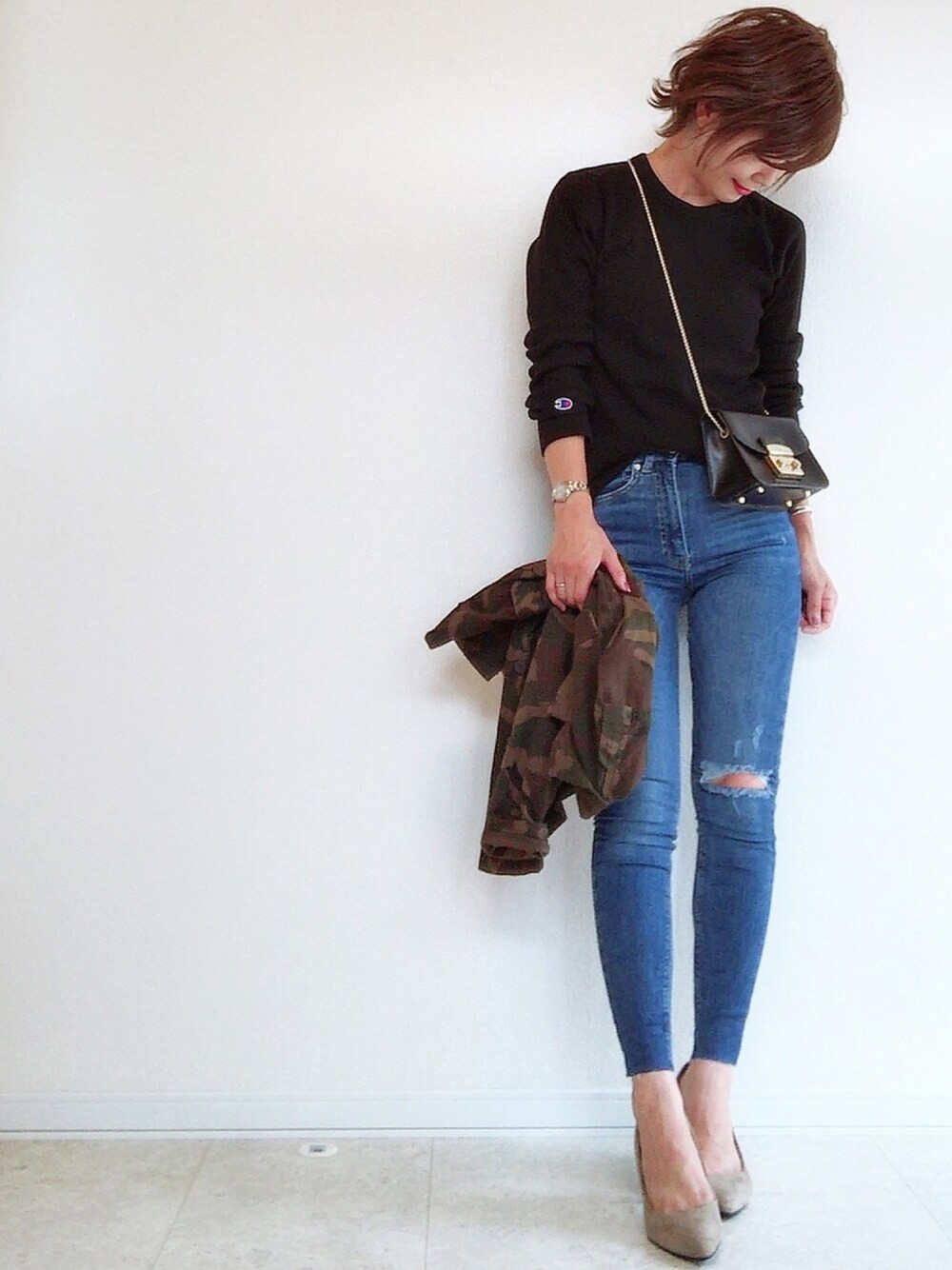 さやのミリタリージャケットを使ったコーディネート