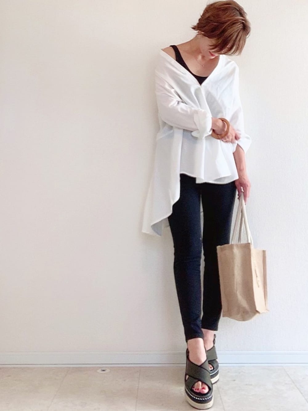 こんにちは☀️ 変わった形でお気に入りの白シャツを💁🏼♂️ この無印バッグ、 190円で買ってからというもの← もう元は取ったくらい使っております🤭💓 ものすごく使えるから 大きさ違いも買ったけど、 どの大きさもとっても使えるー✨