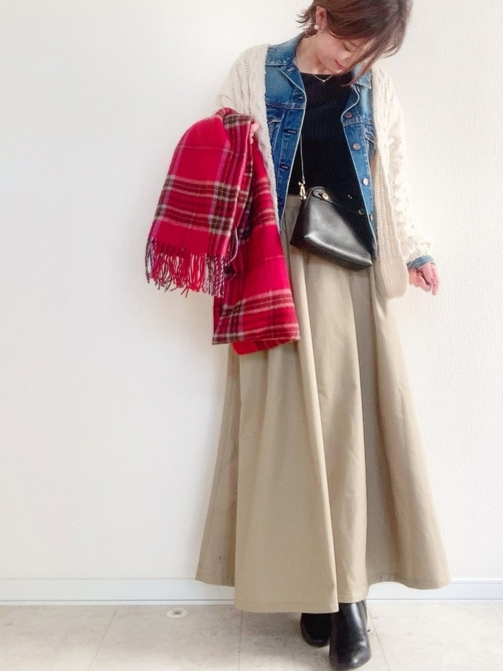さやのカーディガン/ボレロ「ボリュームケーブルカーディガン」を使ったコーディネート