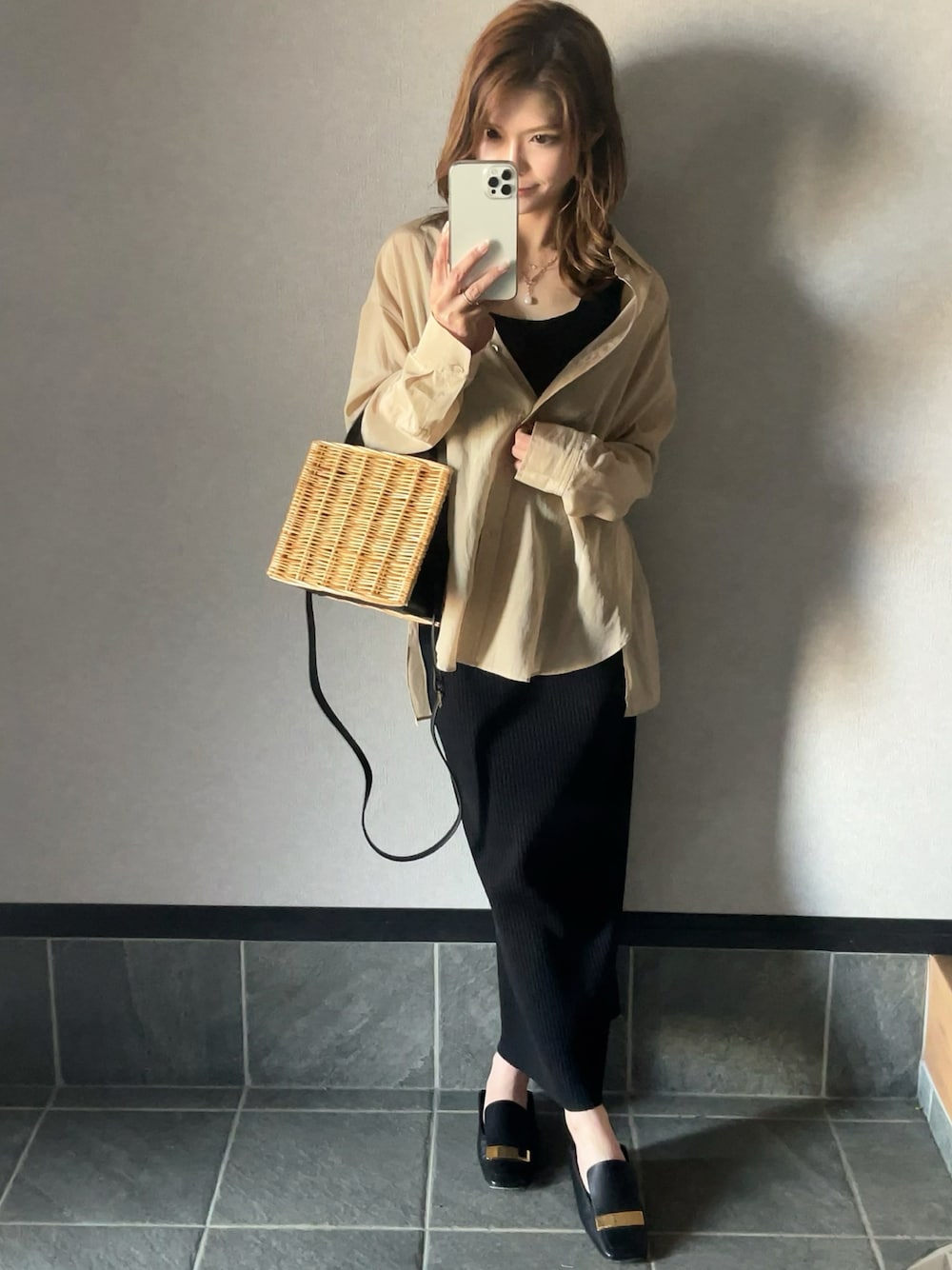 さやのシャツ/ブラウス「シルキーコットンスプリングカラーシャツ◆」を使ったコーディネート