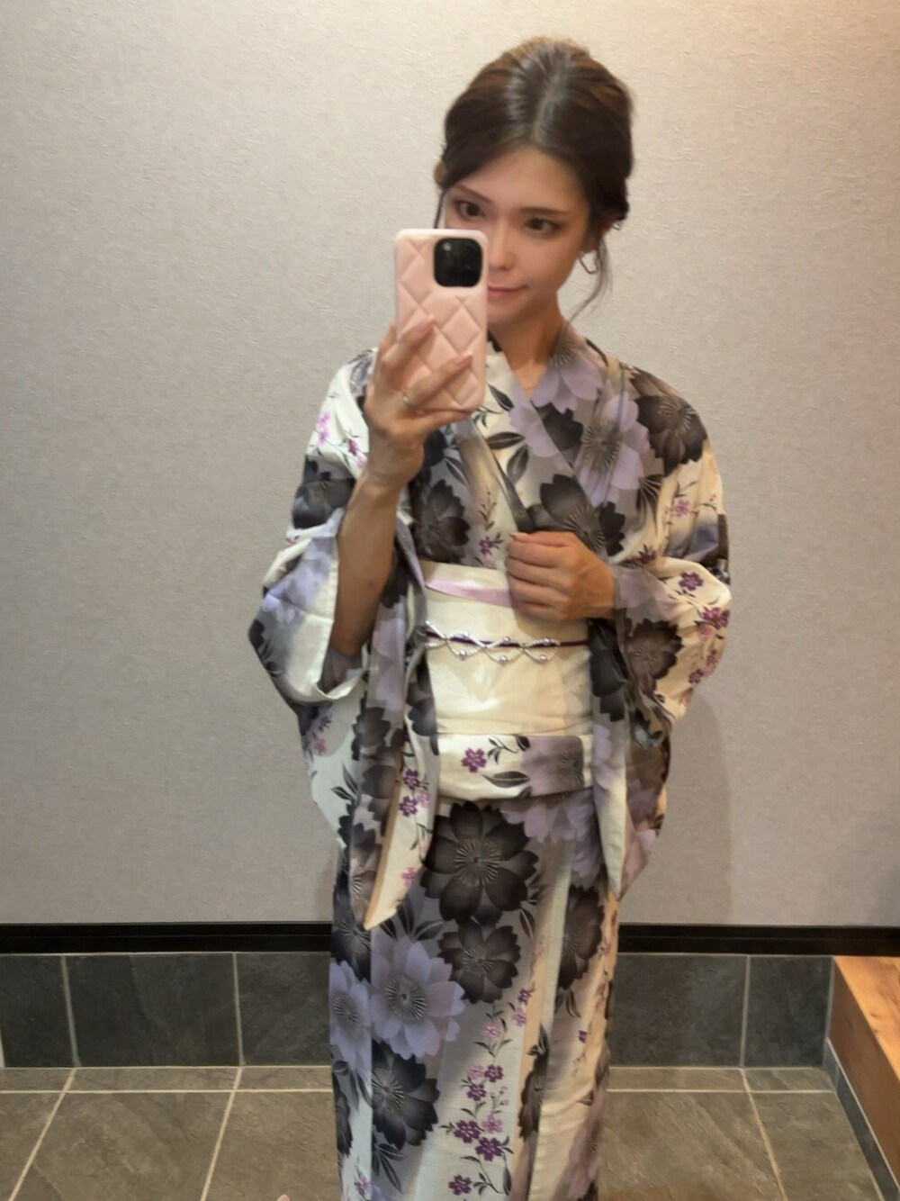 ホワイト系の浴衣を着用したレディースの夏コーディネートの1枚目の写真