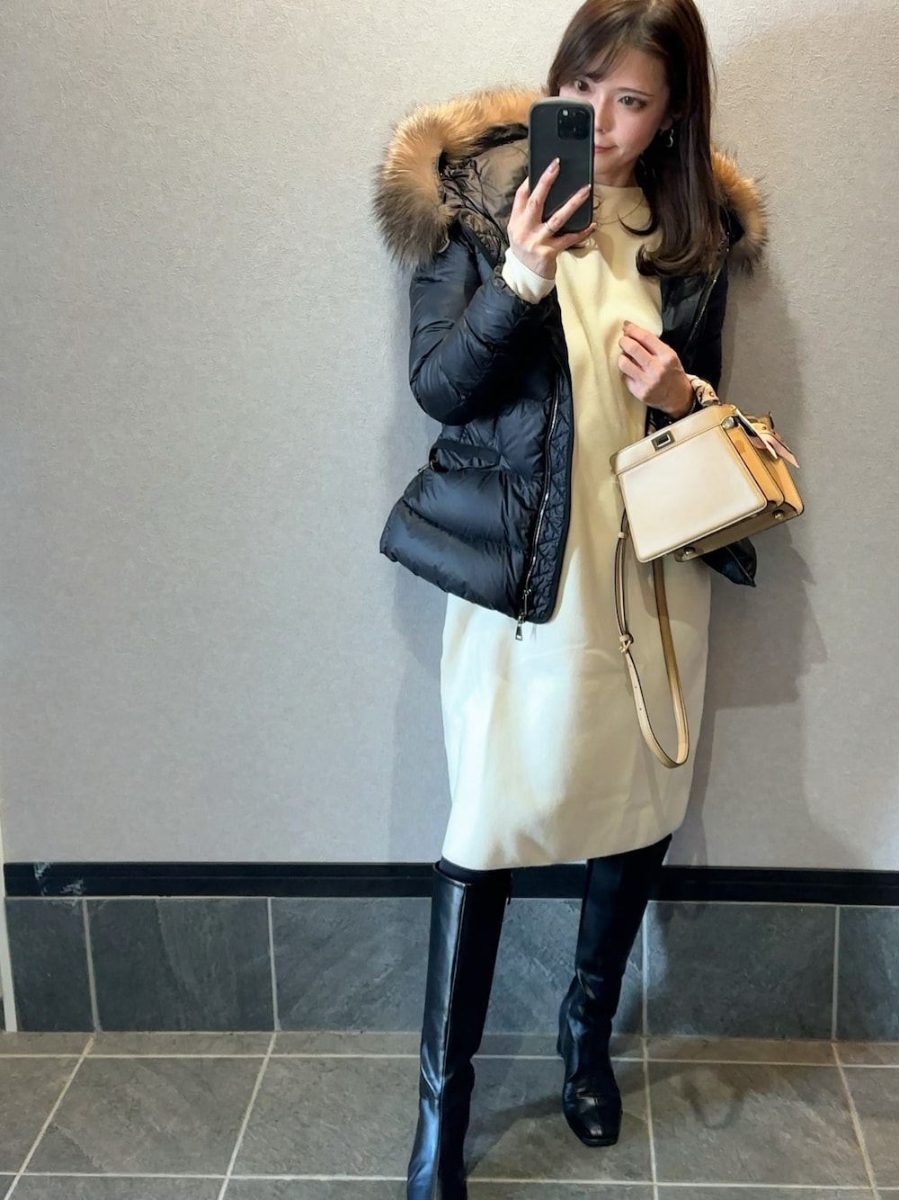 メリークリスマス🎄🎅✨ クリスマスイブコーデは 白ワンピにしました♡ これからケーキとケンタッキー取りに行って来ます☺️ ビーフシチュー作らなきゃ✨