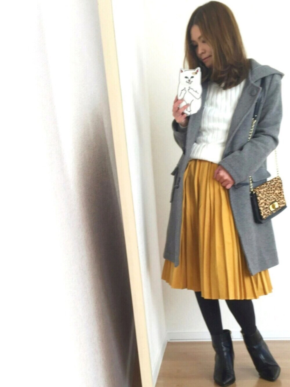 グレー✖️白✖️イエロー♡ レオパ柄のバッグをポイントに😊 黒で引き締めました💡 明るい色を着ると気分が上がりますね♪
