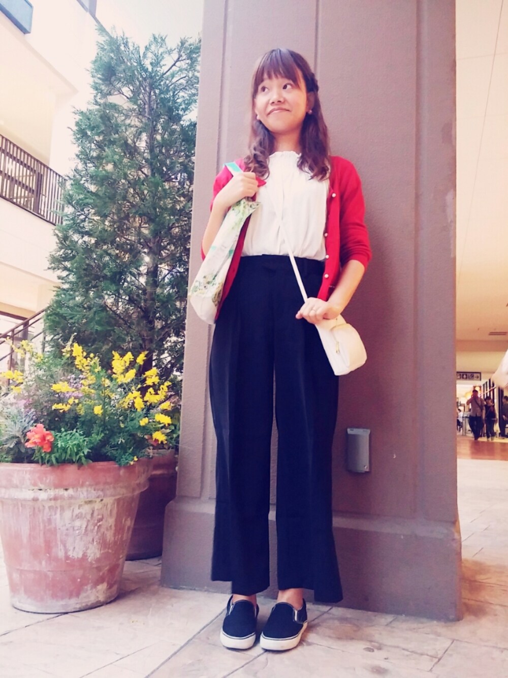 こんばんは🌛 今日は、家族で滋賀竜王のアウトレットへ🚙 渋滞に巻き込まれながらも、無事に着いて たくさん買い物してきました😁💕 コーデは、綺麗めカジュアル♥ オフショル×赤カーデ×黒ワイドパンツ✨ ヘアアレンジは、三つ編みのハーフアップです♥ ほんとは、これに白のぺたんこ靴を合わせたかったけど 雨なので断念しました☔💦 いつもたくさんの イイネ、セーブ、コメント、ありがとうございます♥ 全て励みになってます(*´∇`*) フォローも大歓迎です🙌💕 明日も素敵な日になりますよーに🌻