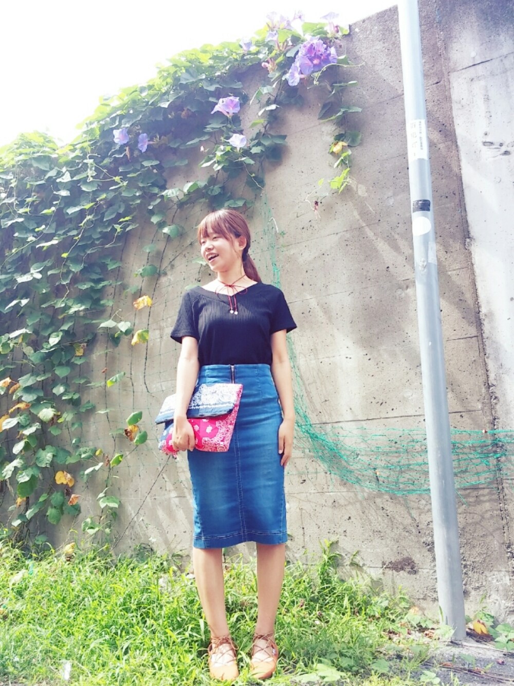 こんばんは🌛 アホ面で失礼します💦笑 今日は旦那さんと近くにお買い物へ♥ 近くで綺麗な昼顔やひまわりが咲いてました🌻 コーデは大人カジュアルwith戦利品🌼 黒バックレース×デニムタイトスカート×赤リボンチョーカー moco'sクラッチ×レースアップシューズ✨ 戦利品は、黒バックレースアップと赤リボンチョーカー💕 黒トップスは、セールで1890円✨ 赤リボンチョーカーは、500円✨ 黒トップスは後ろがレースアップになってて めっちゃ可愛いんです🙈💕 ヘアアレンジは、ローポニーです♥ そして、moco'sクラッチは万能です💕(ノ´∀`*) 最近、無性に黒が着たくなります😂💕 いつもたくさんの イイネ、セーブ、コメント、ありがとうございます♥ 全て励みになってます(*´∇`*) フォローも大歓迎です🙌💕 明日も素敵な日になりますよーに🌻