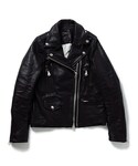 ライダースジャケットをシンプル&綺麗目に着たくてコーデを組みました☆ 何気なく見えるニットのグリーンが差し色。 今年らしいブレイドヘムストスリにヒールを合わせて綺麗目に。