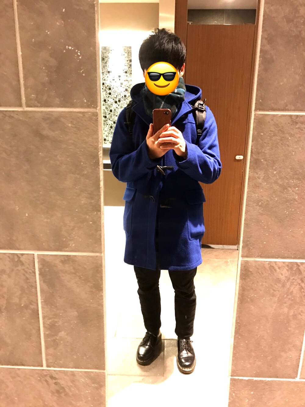 年末年始、まだまだ寒さ続いてダウンが着たい所をグッと我慢して、ダッフルコートでオシャレに仕上げました! ネイビーやグレーが主流で外さない所、自分はチャレンジングにブルーで攻めます(^ ^)