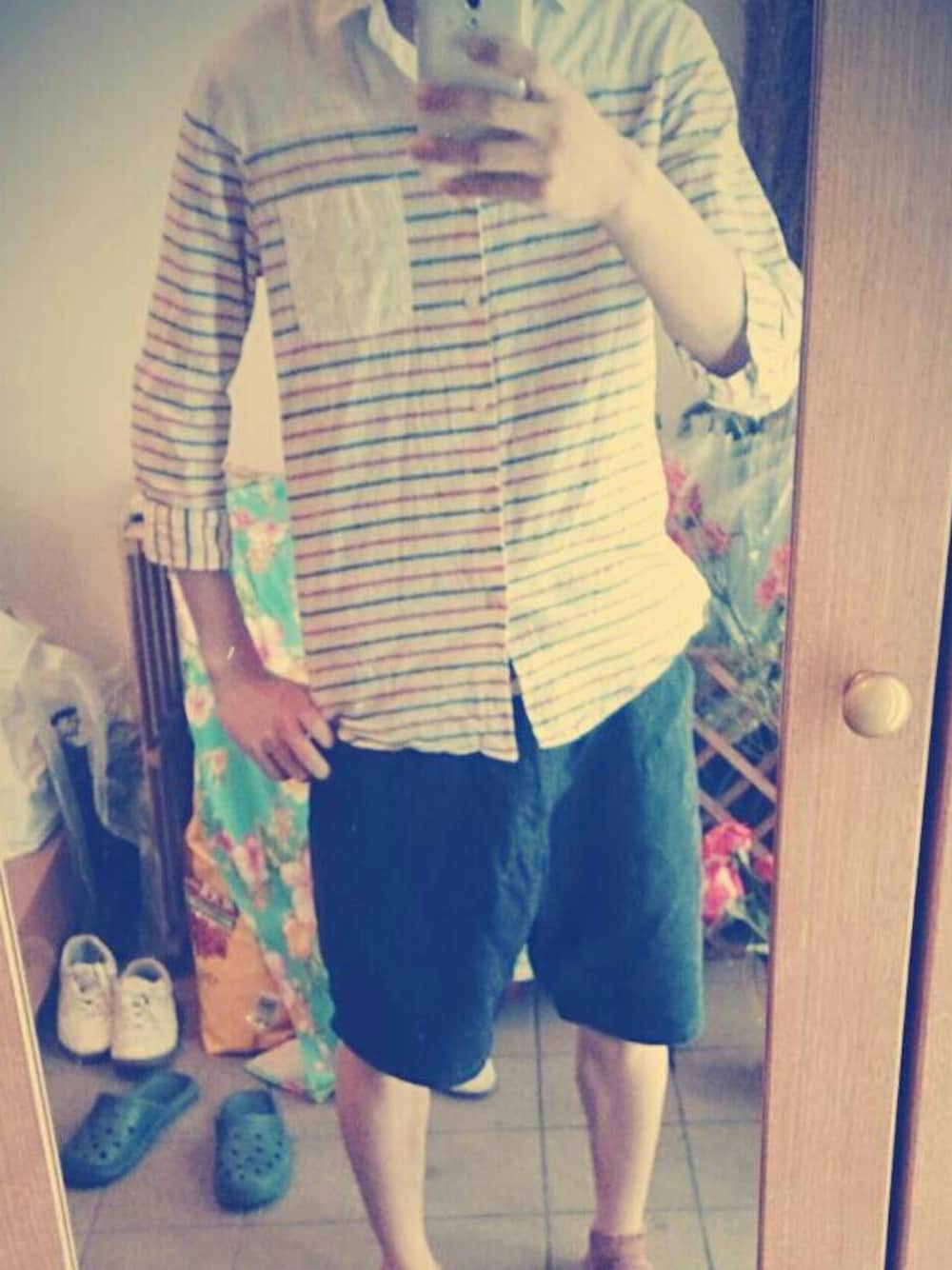夏感 短パンと白シャツで爽やかさを出す