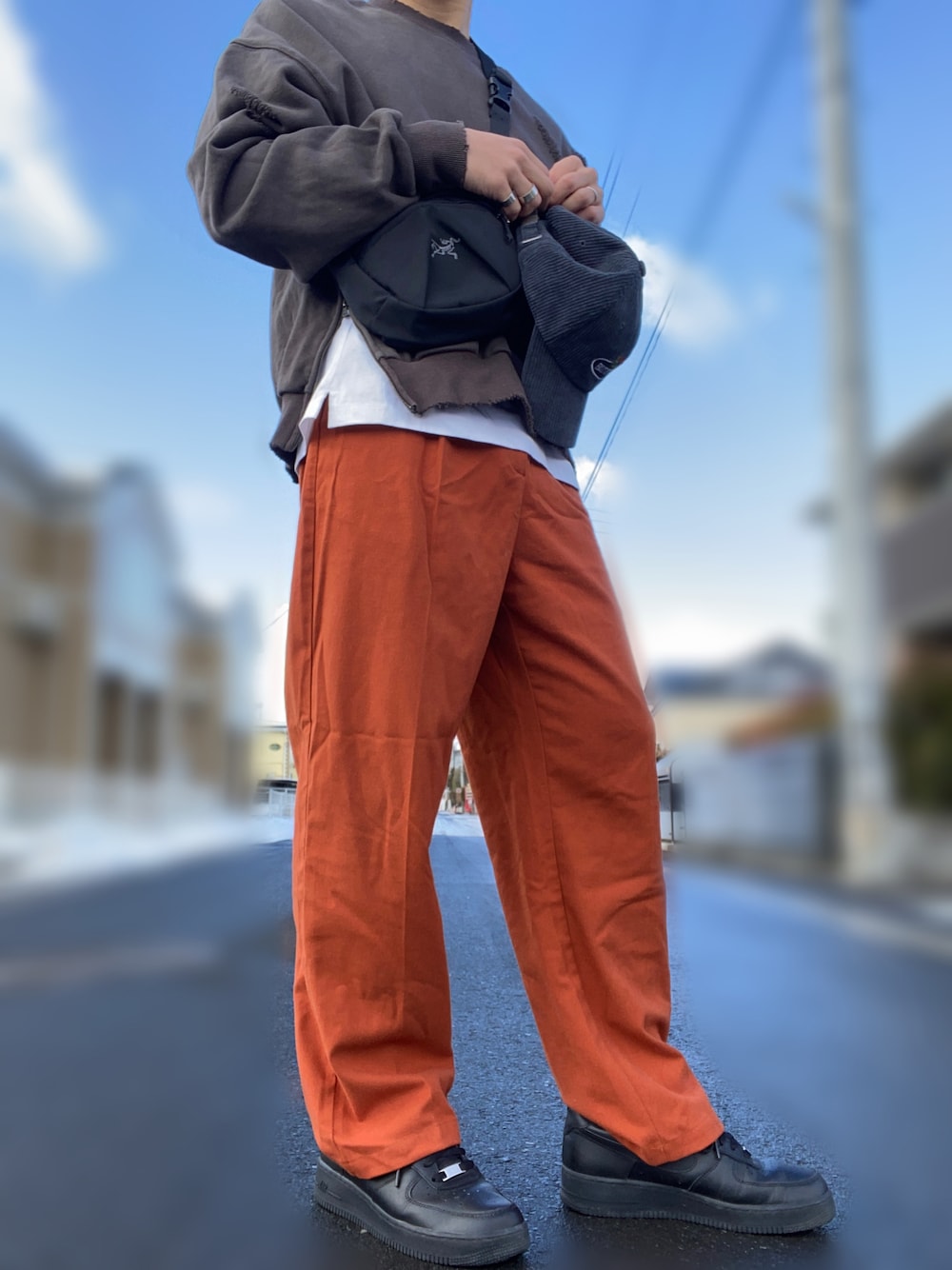 shitaのスラックス「セミワイド カラースラックス ユニセックス(ジョーゼット/ウール混の2タイプ) je-101 chw869【ベーシックライン】」を使ったコーディネート