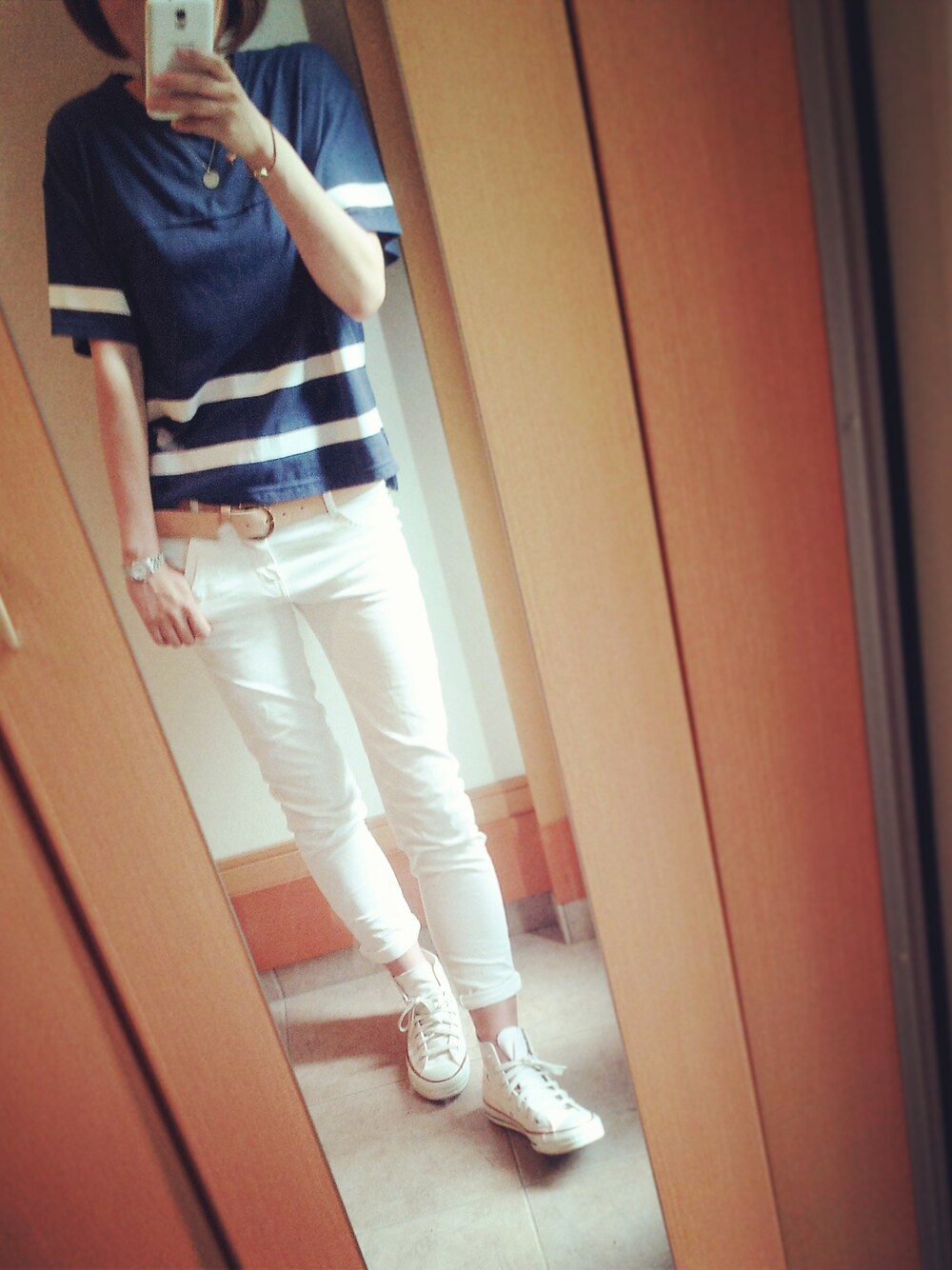 土日は落ち着きを重視していたため、 週初の今日は箍が外れたように、とってもスポーティー。 ヌメ革が好きで今日のベルトも愛用中。 これつけると一気に上品さが出るんだと、思い込み中。