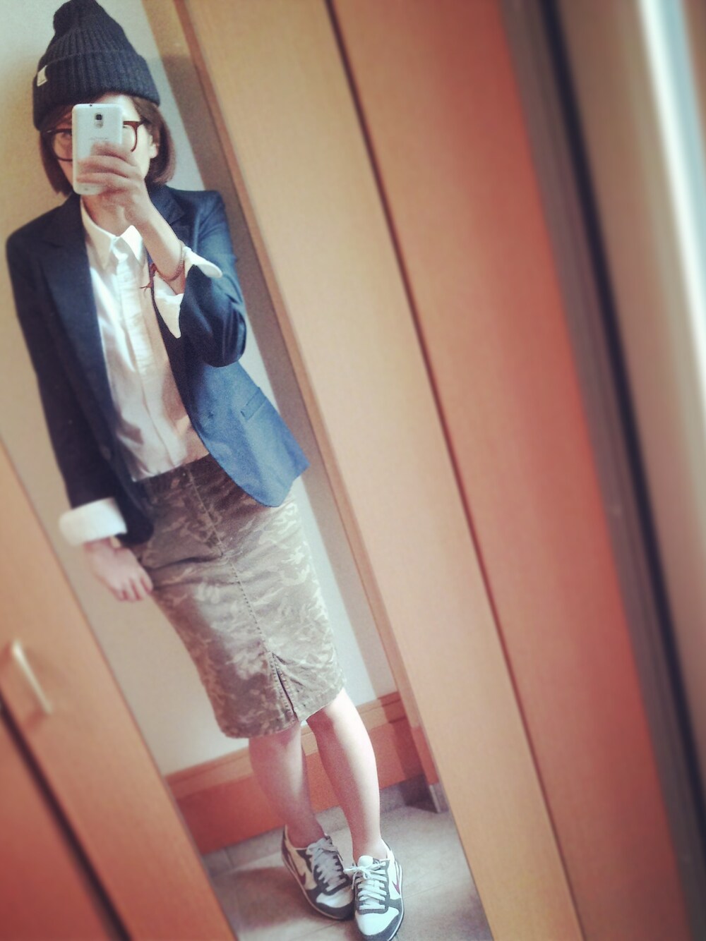 カモフラスカートを履くと長男が私のことを「自衛隊の人」と呼んでくる。。 いかついってこと…? そんな彼は今日は遠足へ行って疲れる予定のため、夕方のフットサルはお休みするらしい。 …嫌な予感。 疲れたって言うくせに、どうせ夕方暇になってきたらボール一緒に蹴りに行こうとか言うに決まってる。 だから 「スカート履いてるし、今日の母はボール蹴るつもりはありません」 と、いう旨をアピールしてたんだけども、彼は気付いただろうか… ちなみに今日は先週木曜のコーデの上着を変えただけですな。